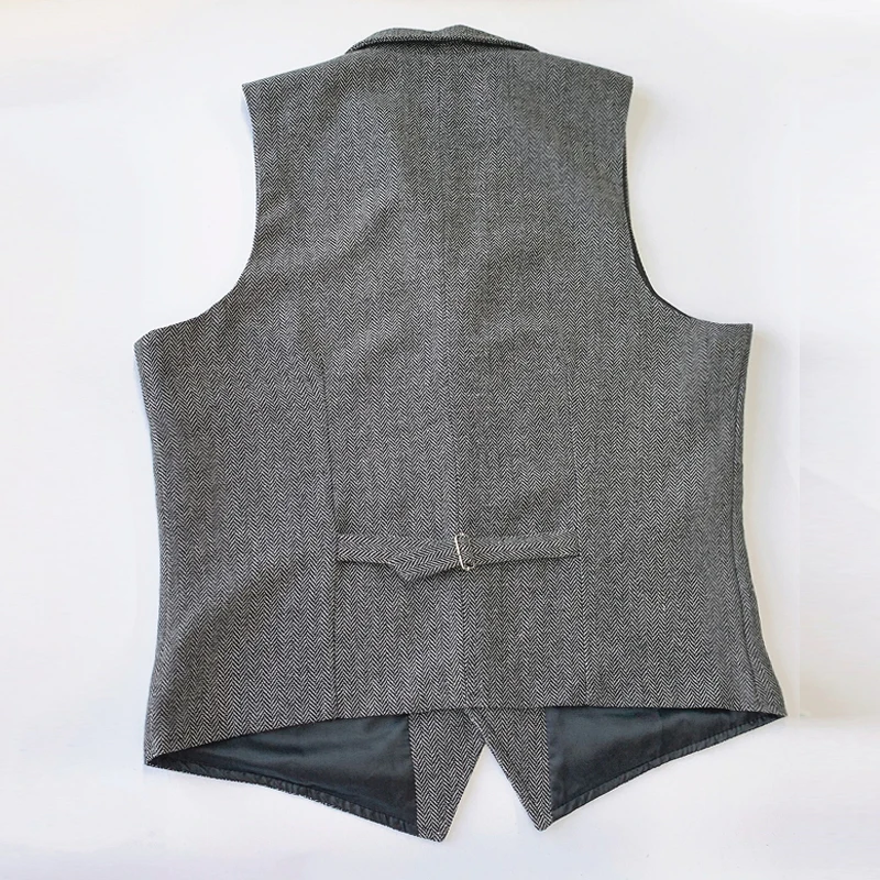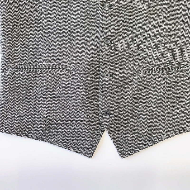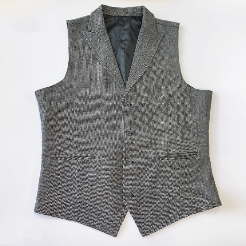 Мужской шерстяной жилет в елочку, Серый Повседневный Приталенный жилет с лацканами и V-образным вырезом, для свадьбы