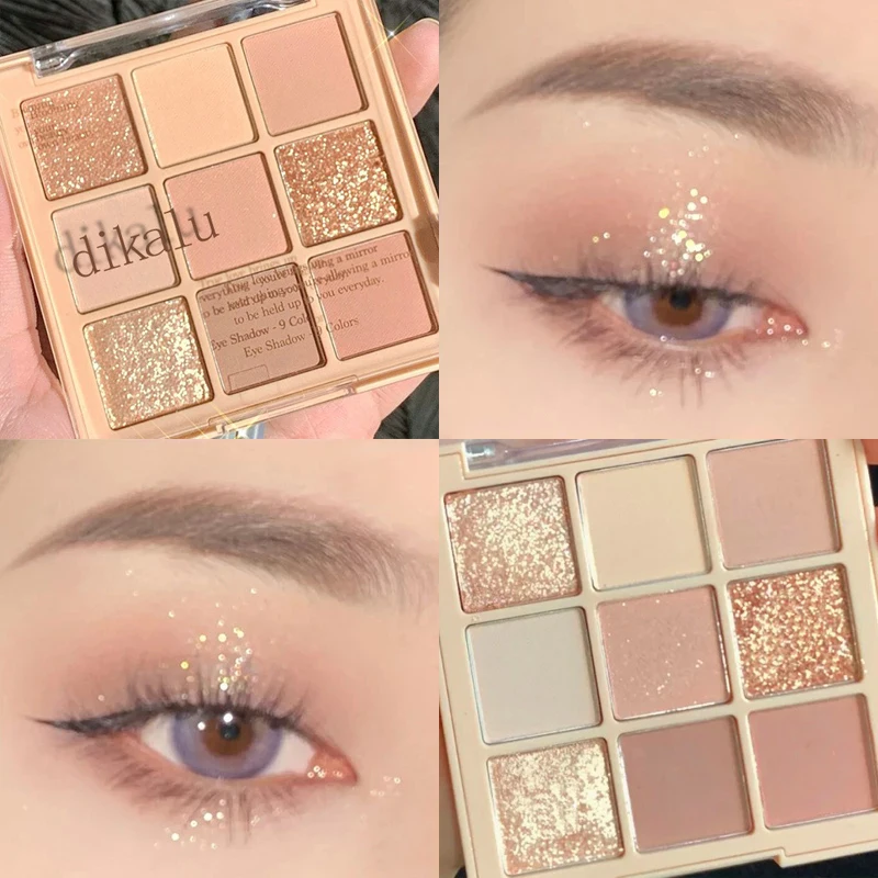 Палитра теней для век DIKALU, 9 цветов, матовые блестящие мерцающие...