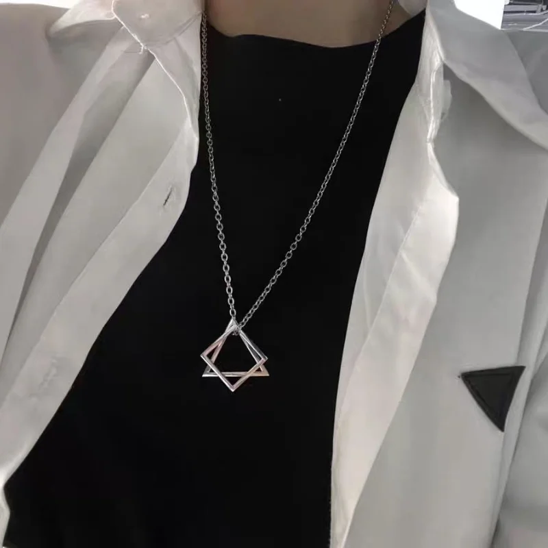 2021 Kpop панк мужской квадратный треугольник кулон ожерелье Инди ш...