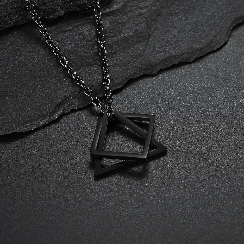 Мужской кулон из нержавеющей стали, Геометрическая взаимная блокировка, квадратный треугольник, современный модный геометрический интерьер