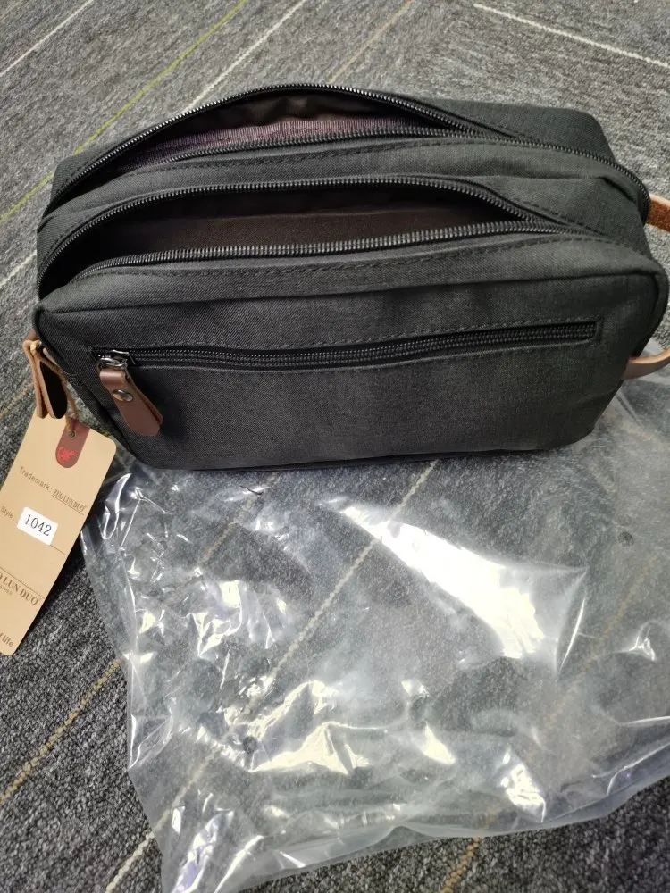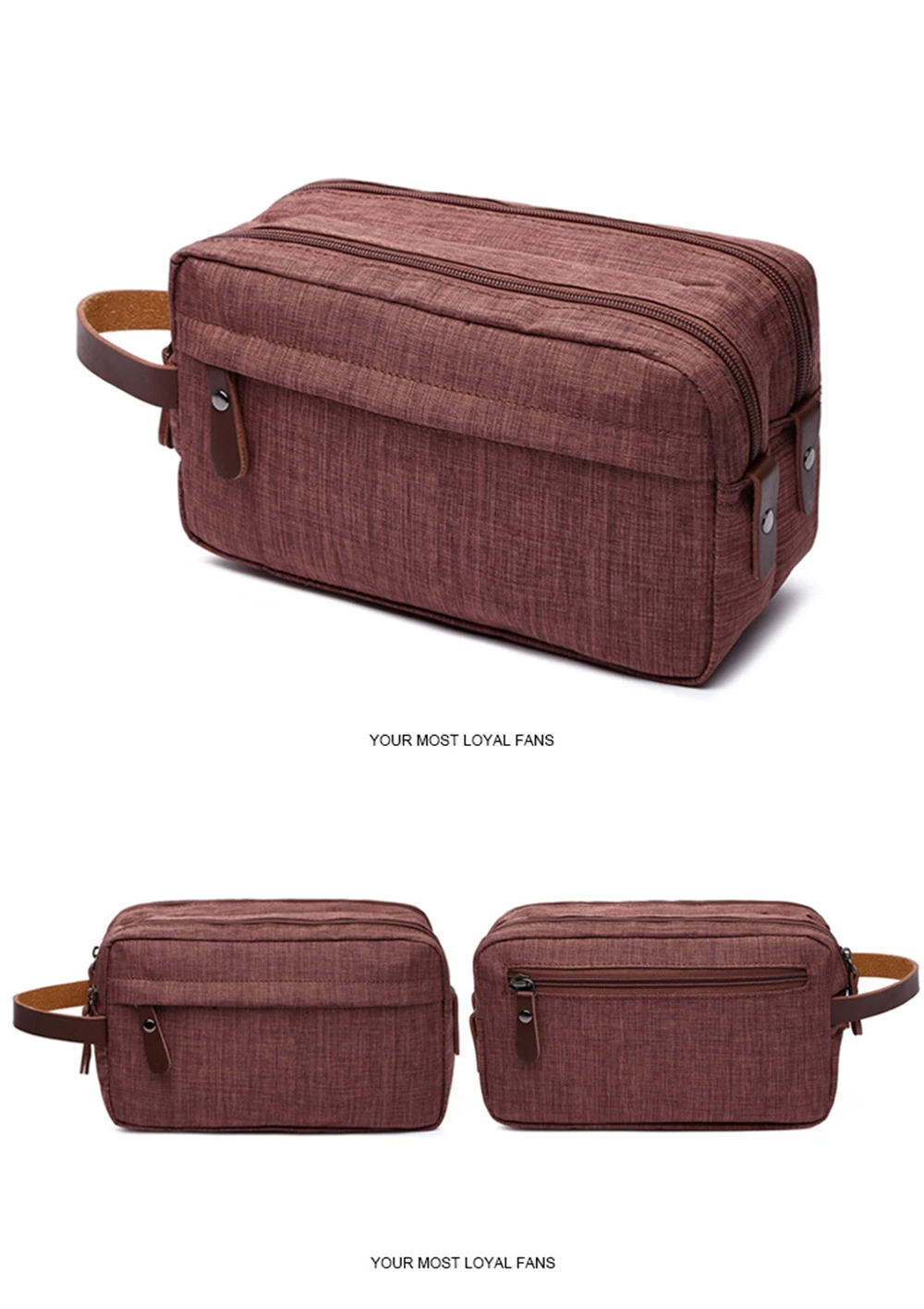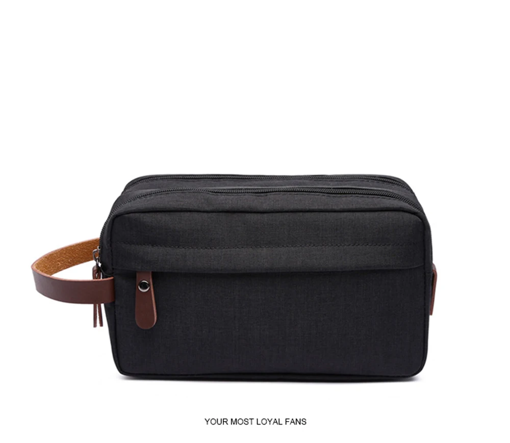 Новая повседневная холщовая косметичка с кожаной ручкой для мужчин и женщин, дорожный водонепроницаемый органайзер для хранения туалетных принадлежностей, 2022