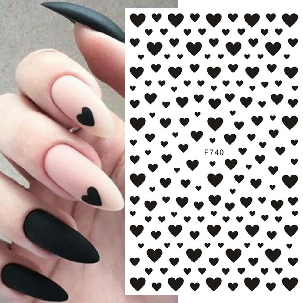 3D наклейки для ногтей, 1 лист, черное сердце, любовь, самоклеющиес...