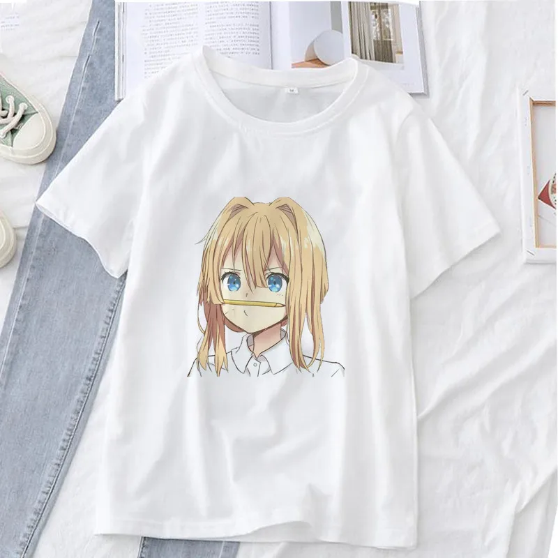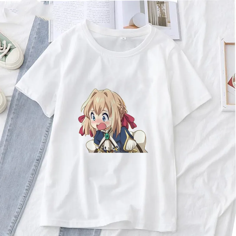 Лидер продаж, женская летняя футболка фиолетового цвета с рисунком аниме Evergarden, женские топы в стиле Харадзюку, футболки с графическим рисунком, футболки для женщин