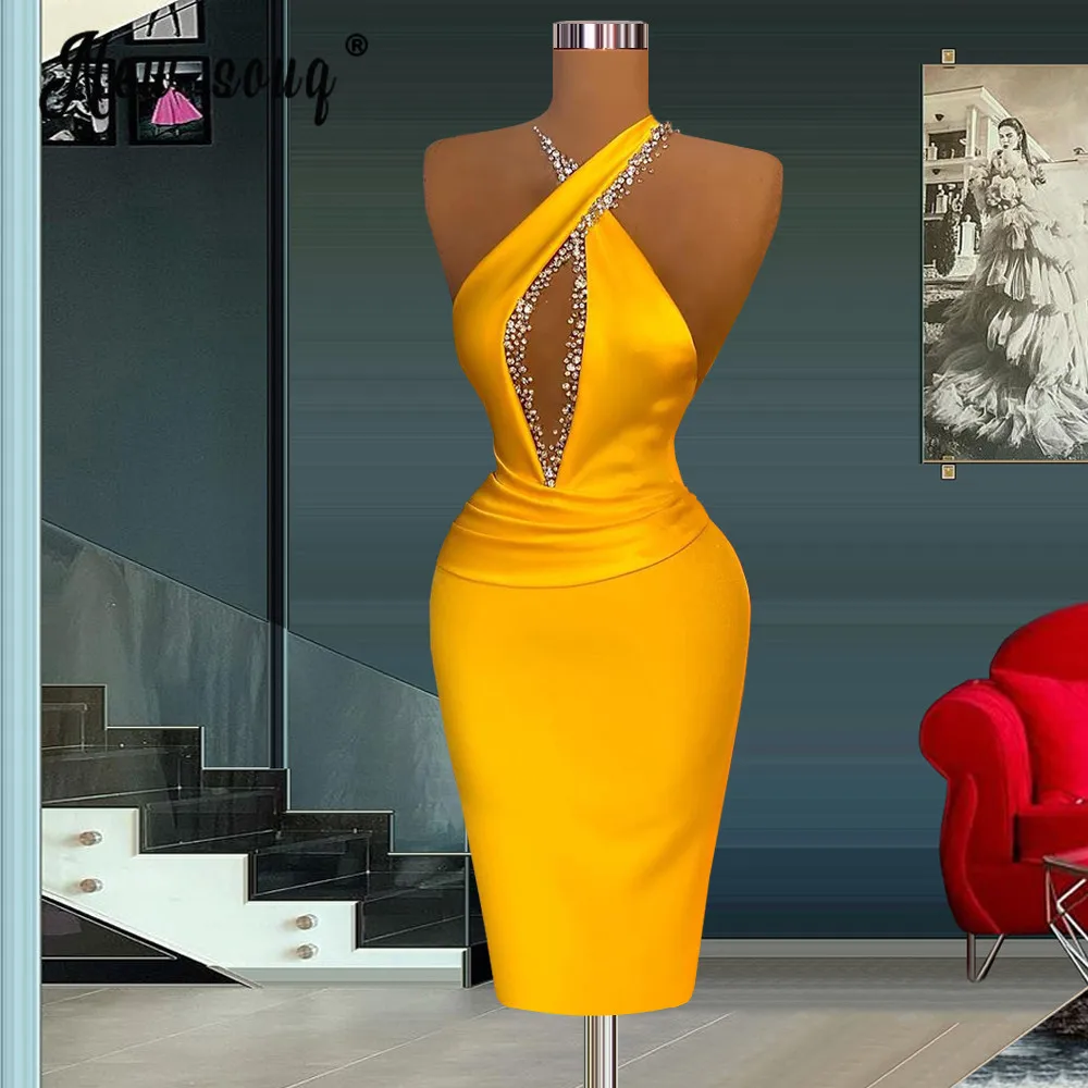 Золотистые коктейльные платья на одно плечо с открытой спиной и кристаллами, плиссированные короткие платья-русалки для выпускного вечера, Платья для вечеринок и представлений