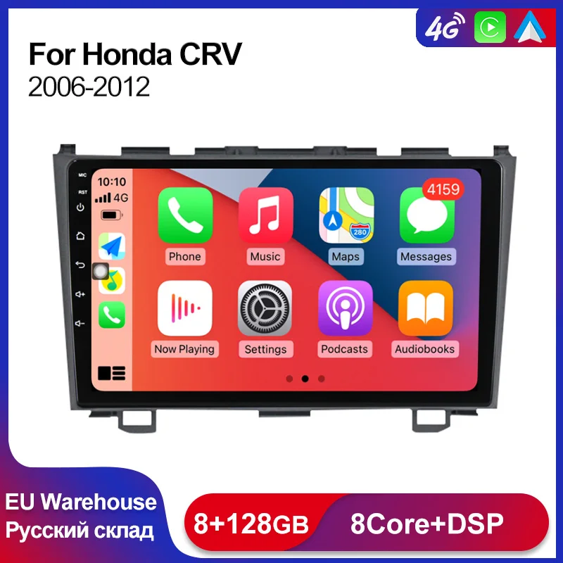 Автомобильный мультимедийный плеер с радио, 9 "IPS-экран, 2Din, Android 11, GPS-навигация для Honda CRV CR-V 2006-2012, головное устройство Carplay 4G Lte