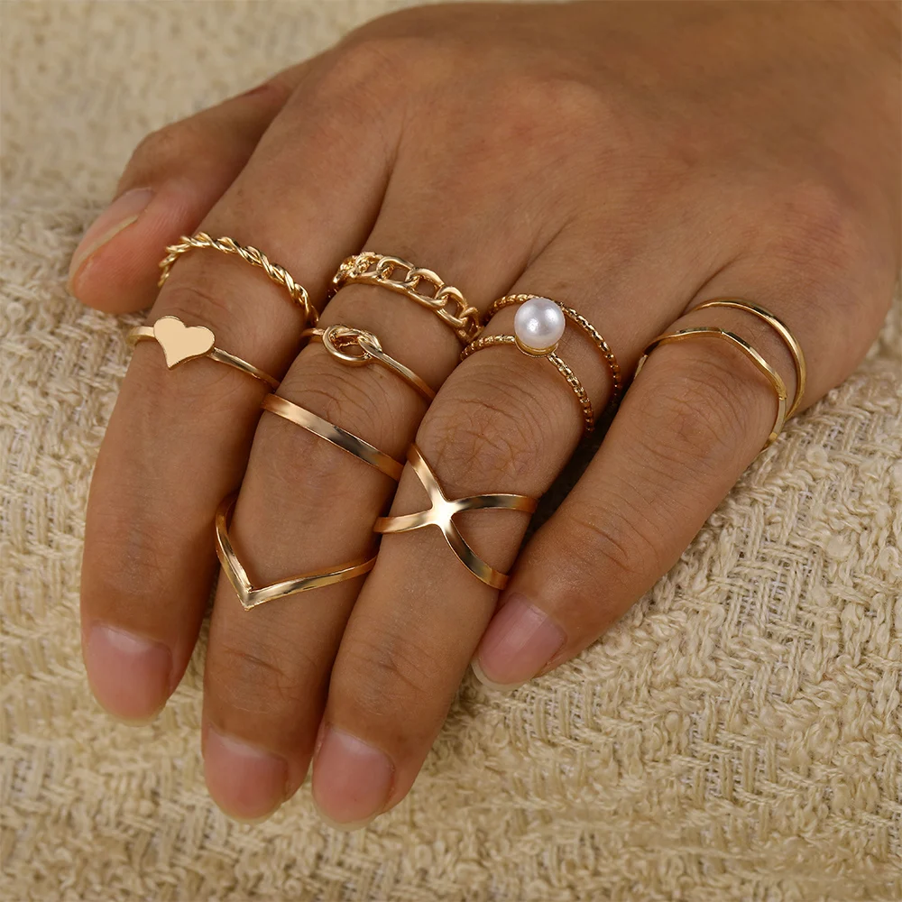 Набор геометрических колец золотого цвета в богемном стиле для женщ...