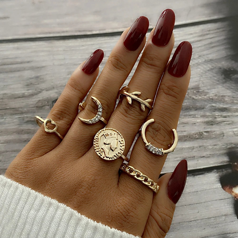 Набор Колец золотистого цвета в богемном стиле для женщин, модные кольца в стиле бохо с монетами, змеей, луной, вечерние ювелирные изделия, подарок, 2021