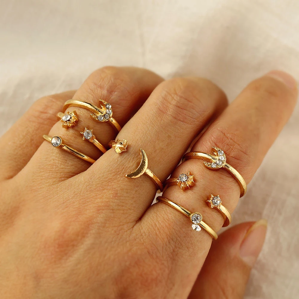Женские кольца с Луной и звездами, набор колец под золото, богемные...