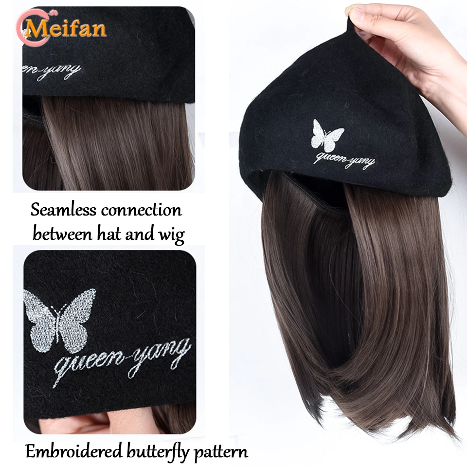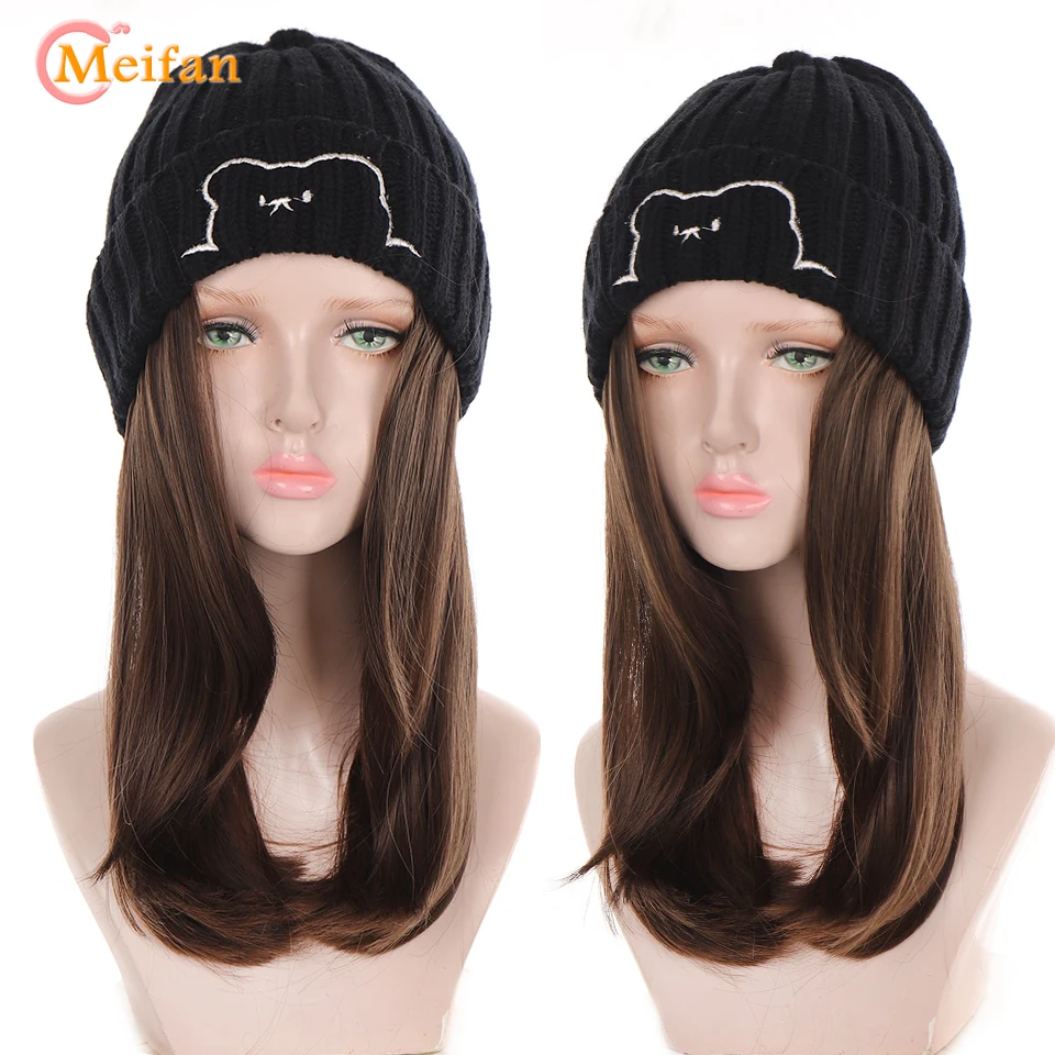 MEIFAN парик из прямых волос до ключицы синтетическая вышитая бабочка берет вязанная теплая шапка зимняя шапка парик для наращивания волос