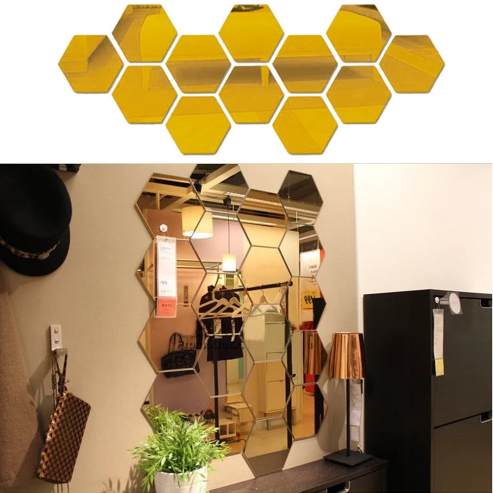 Зеркальная самоклеящаяся наклейка 3D для украшения стен, самоклеящиеся акриловые Зеркальные Стикеры с шестигранным узором, домашние декоративные наклейки для гостиной