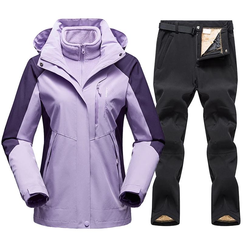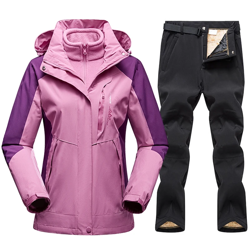 Женская зимняя ветрозащитная куртка и брюки для женщин, теплые водонепроницаемые костюмы для катания на лыжах и сноуборде, Женское лыжное пальто