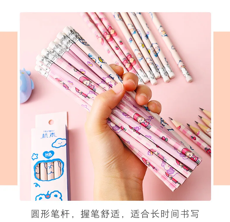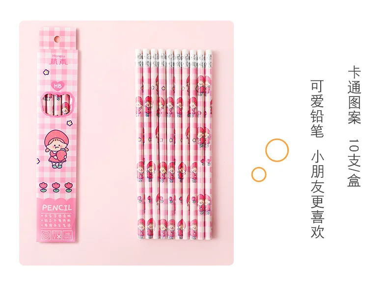 10 шт.лот карандаш с рисунком из мультфильма, деревянные свинцовые карандаши HB, карандаш с ластиком, карандаш для рисования детей, школьные канцелярские принадлежности для письма