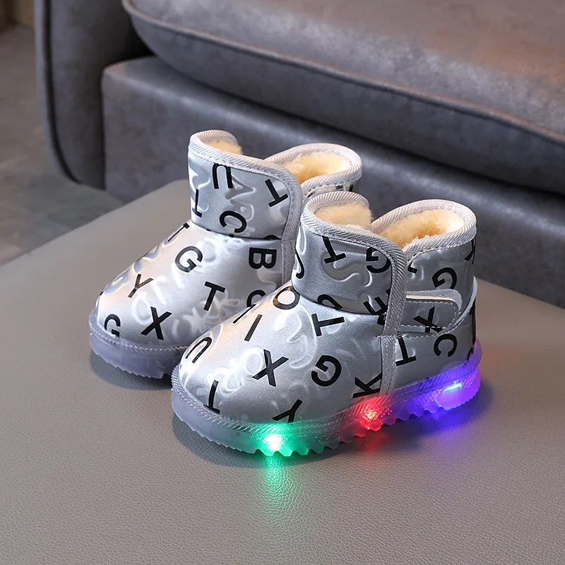 Детские светящиеся кроссовки, зимняя обувь с подсветкой, короткие теплые ботинки для мальчиков и девочек, размеры 21-30