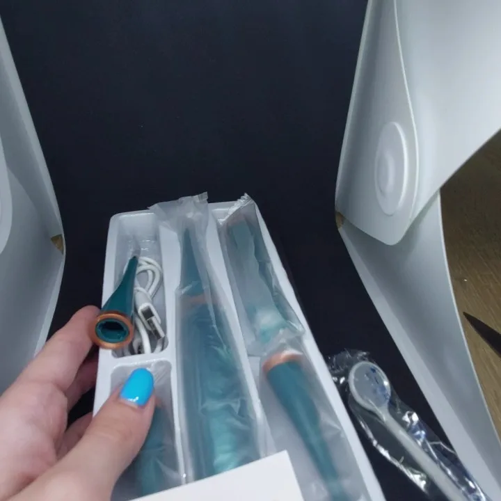 это не ультразвуковая щетка, а обычная вибрационная/звуковая! не вводите в заблуждение. ещё и лопатки добавили от скалера) пломбы только ими повредите!