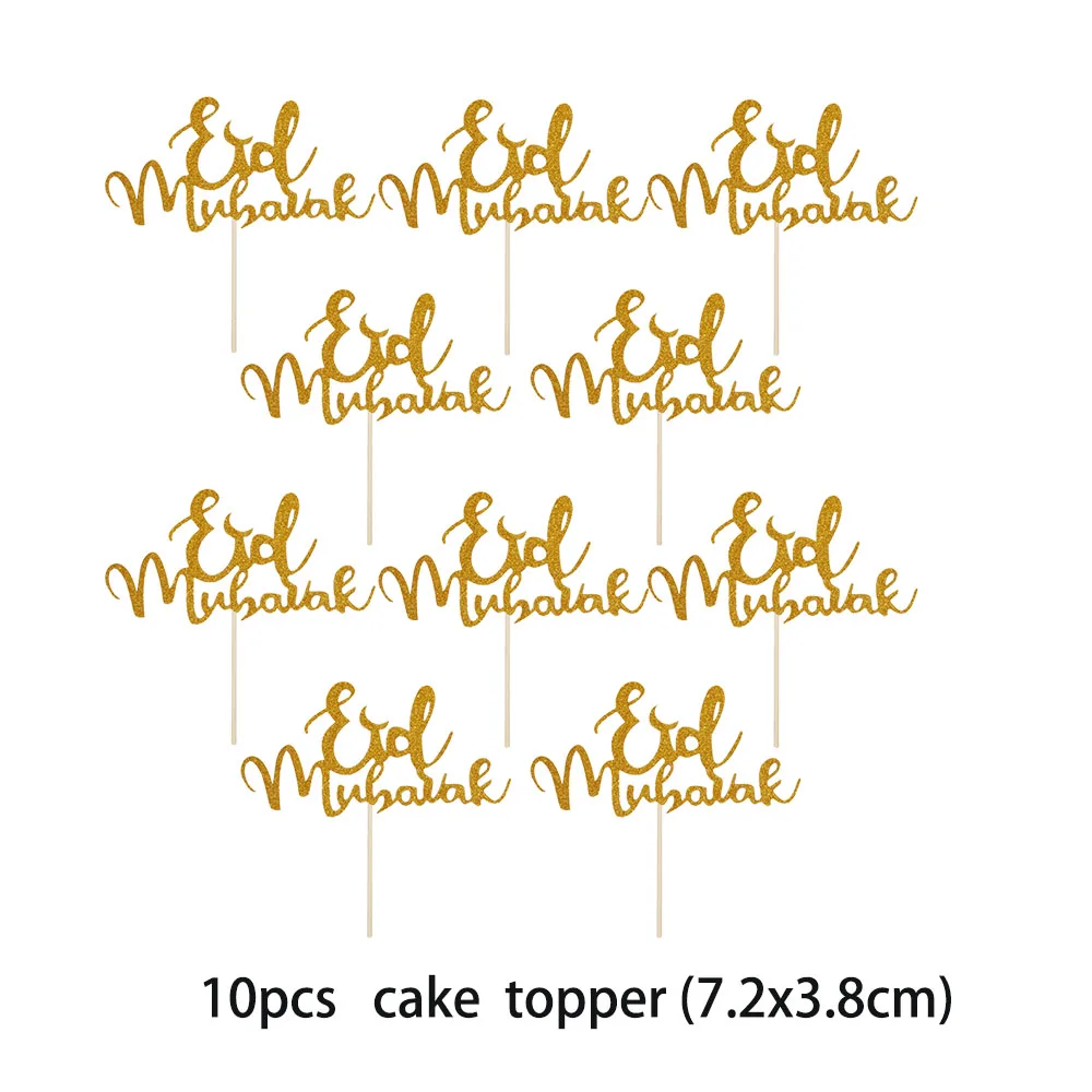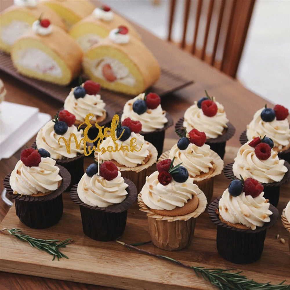 1 шт. блестящие топперы для капкейков Happy Eid Mubarak, золотые, с...
