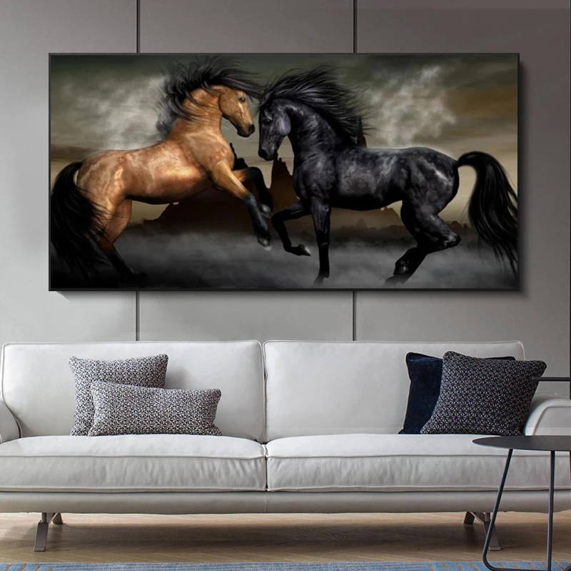 Современные животные две лошади Танцующая Настенная картина на холсте настенные картины для гостиной
