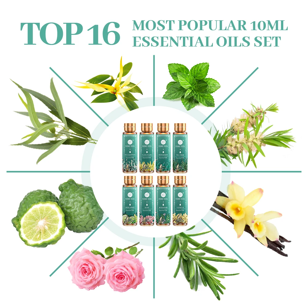 16 шт., ароматическое масло, ваниль, гвоздик, лаванда, роза, сандаловое дерево, жасмин, перечная мята