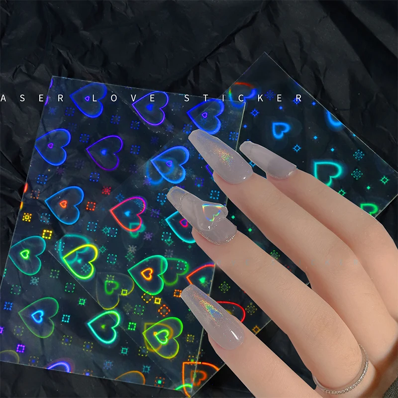 Самоклеящиеся наклейки для ногтей с сердцем, лазерные бронзирующие наклейки для дизайна ногтей, настоящие 3D Слайдеры для ногтей