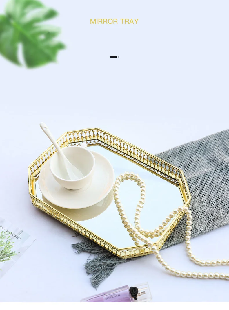 Европейский зеркальный стеклянный металлический лоток для хранения ...