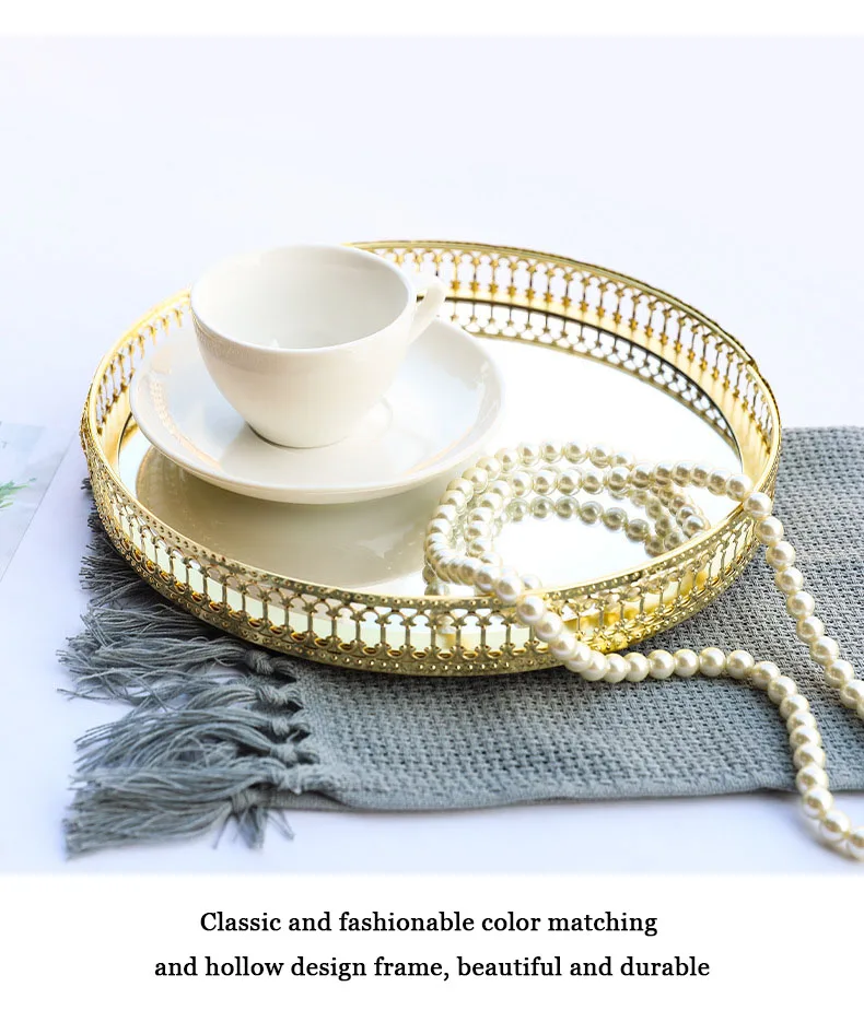 Позолоченный металлический лоток для хранения в скандинавском стиле, лоток из зеркального стекла с отверстиями, Золотая прямоугольнаякруглая настольная тарелка для мелких предметов, демонстрация ювелирных изделий
