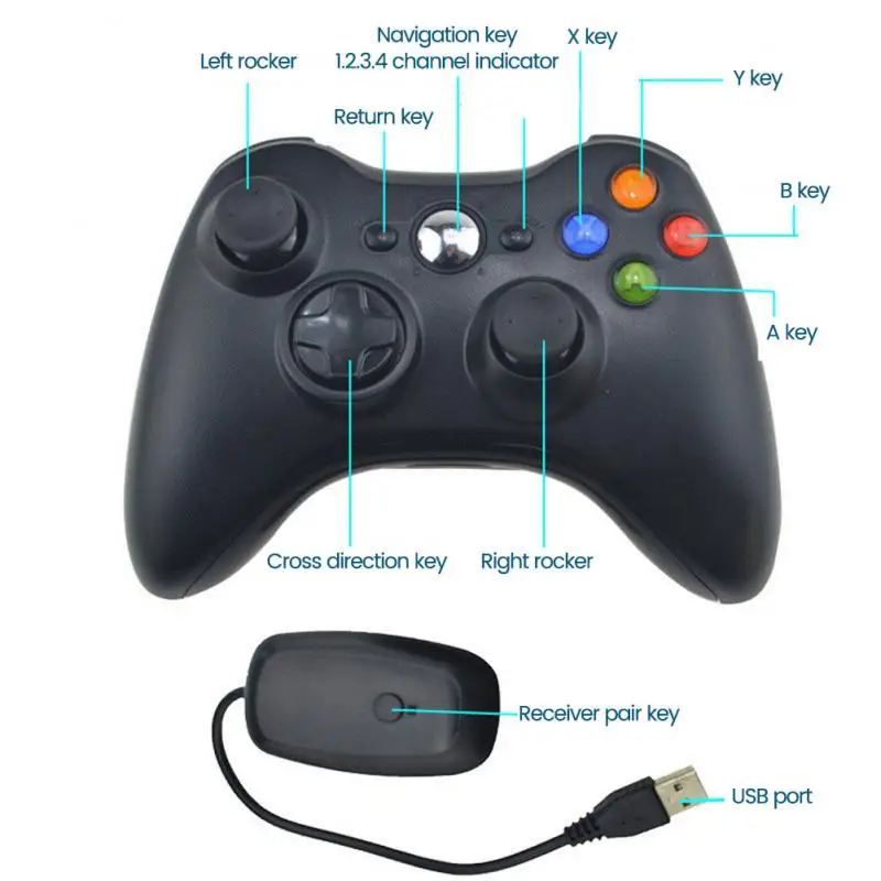 Когда вы играете в игры для устройства Xbox 360, его нужно подключить к беспроводному приемнику к вашему хосту, а затем подключить к беспроводному контроллеру для работы.