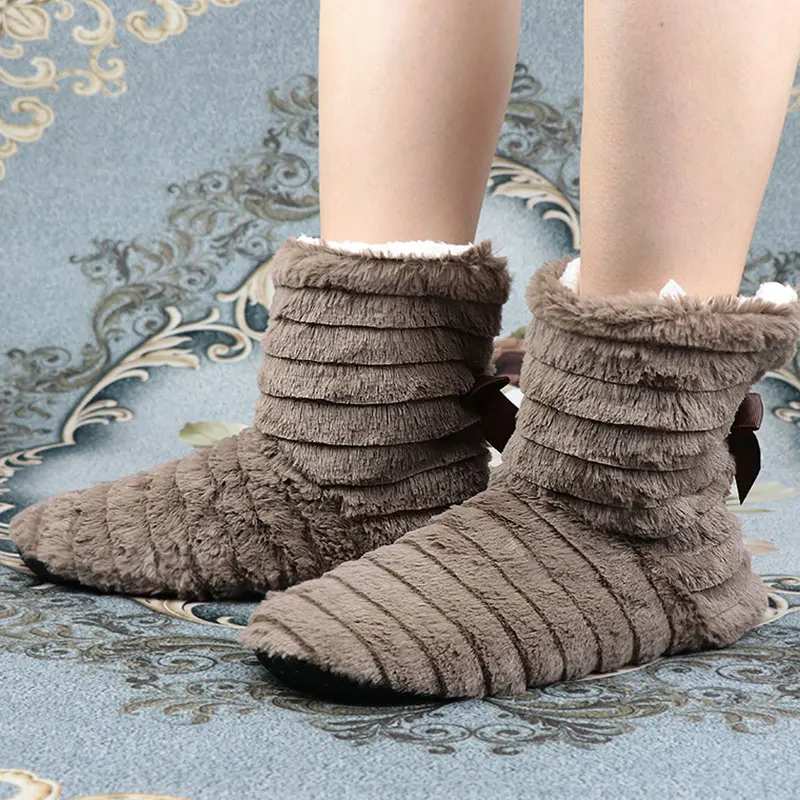 Зимние тапочки; Женские носки-тапочки; Домашние меховые тапочки; Теплые плюшевые тапочки с бантиком-бабочкой; Удобные нескользящие домашние тапочки