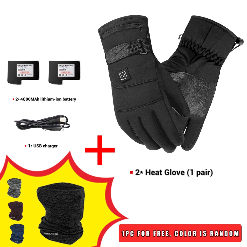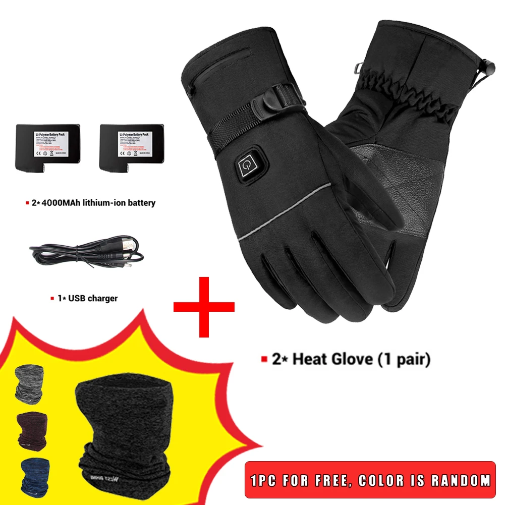 Зимние лыжные перчатки с электрическим подогревом и USB, 3,7 в, 4000 мАч, перчатки с перезаряжаемой батареей для рук, перчатки для охоты, рыбалки, катания на лыжах