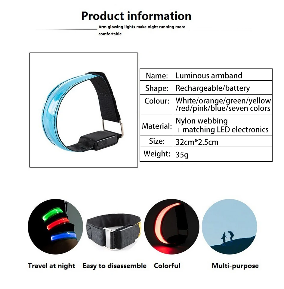 USB зарядка повязки светодиодный светящийся ночной бег Регулируемая безопасность