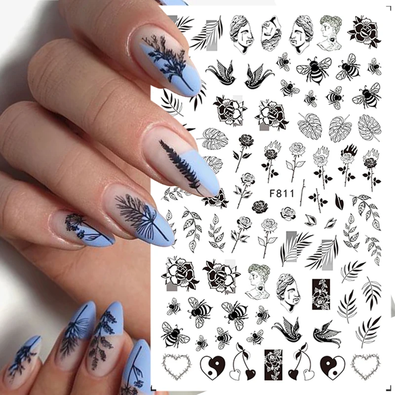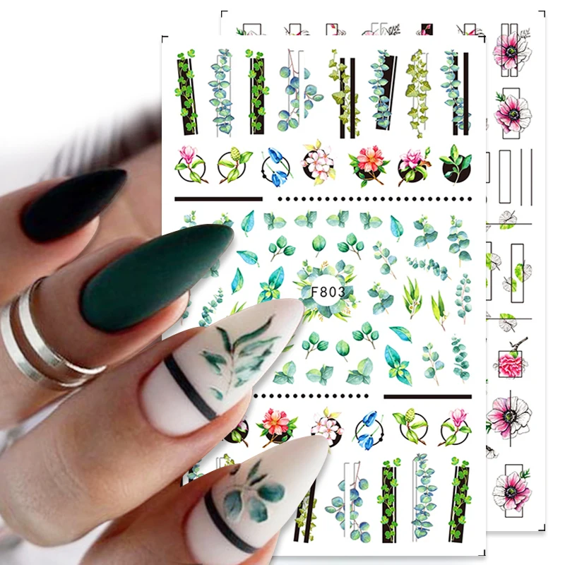 3D Подвески, цветы, листья, фольга для ногтей, наклейки, акварель, абстрактные зеркальные слайдеры, искусство, украшения для лета