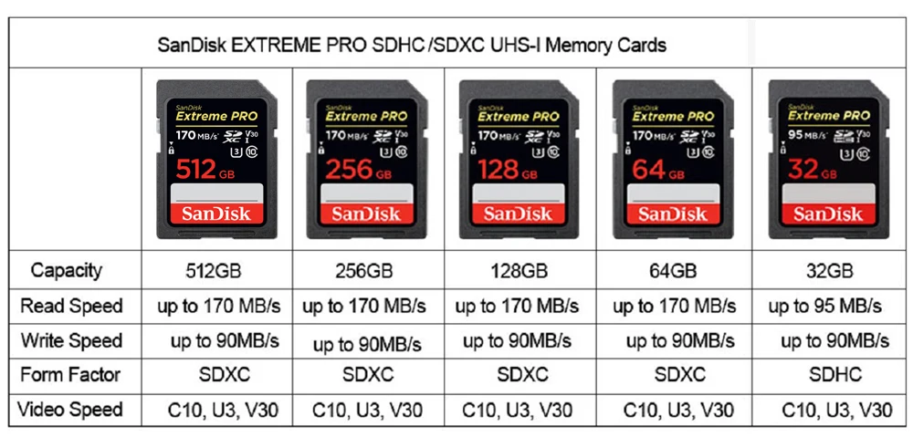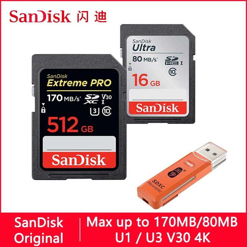 Карта памяти SanDisk Extreme ProUltra SD, 128 ГБ, 64 ГБ, 32 ГБ, 512 ГБ, 256 ГБ, 16 ГБ, SD, 128 ГБ, карта флэш-памяти SD, U1U3, 4K, V30 карты SDXC, SDHC