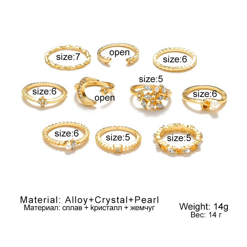 Модное кольцо Луна Звезда Любовь 10 шт. в комплекте золотые кольца ...