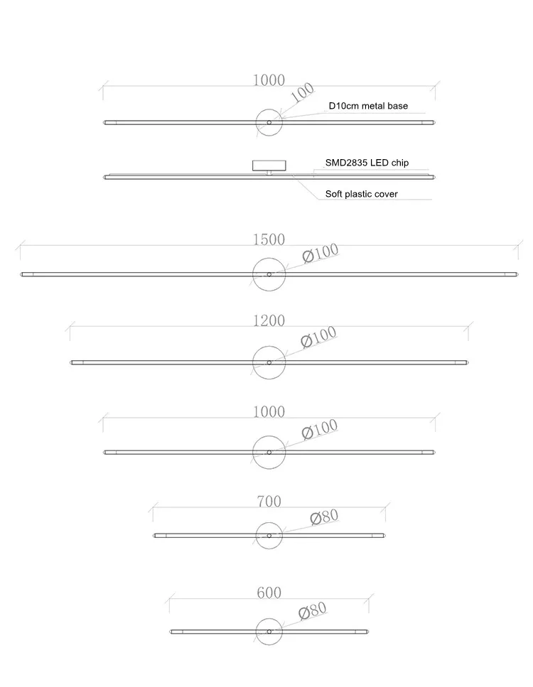 Светодиодный источник питания: 60 см-9 Вт, 70 см-11 Вт, 100 см-17 Вт