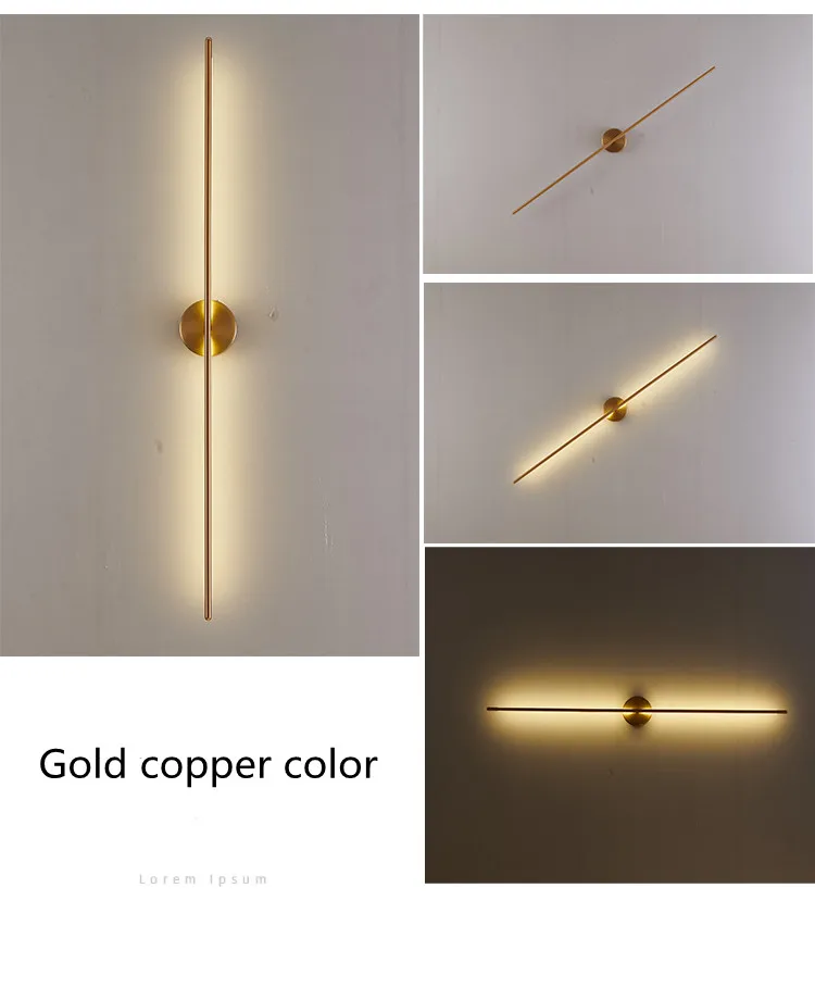 Длинные настенные светодиодсветодиодный лампы в скандинавском стиле, Горизонтальные и вертикальные железные светильники для стен, зеркальный минималистичный настенный светильник, золотистые, хромисветильник бра