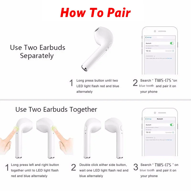 I7s TWS беспроводной наушник Bluetooth 5,0 наушники гарнитура наушники для смартфона Xiaomi Samsung HuaweiОсобенности:1. Прослушивание правильной песни, поддержка песен и звонков,2. Напоминаем номер звонка, последний звонок назад, все интеллектуальные китайские и английские голосовые подсказки, загрузка, пара, отключение питания телефона будет низким голосовым подсказкой;3. Мощность будет отображаться на вашем Iphone, вы можете видеть ситуацию с питанием в любое время, не беспокойтесь о электричестве, Сделайте свою жизнь без беспокойства;4. Одно-два подключения, можно подключить к двум мобильным телефонам одновременно5. Bluetooth-гарнитура, подключенная к телефону после выключения, а затем откройте bluetooth-гарнитуру, автоматически подключится к телефону, что более удобно;6. Интеллектуальная Совместимость: Поддержка всех Bluetooth мобильный телефон, планшет, ноутбук, пение, QQ музыка, фильмы и т. Д., универсальный мобильный телефон Спецификация:1. Драйвер: 15 мм2. Сопротивление: 32 Ом3. Версия Bluetooth: Bluetooth v5.0 + EDR4. Используемый диапазон Bluetooth: 2,4 ГГц5. Уровень мощности: класс II6. Выходная мощность: 30 мВт7. Расстояние Bluetooth: 10 метров барьер8. Частотная характеристика: 20-20000 Гц9. Диапазон рабочего напряжения: 3,0 V-4,2 V10. Чувствительность микрофона: -42 дБ11. С A2DP / AVRCP высокое качество стерео аудио передача и протокол дистанционного управления12. Мощная Схема шумоподавления (активное шумоподавление)13. Переключение между китайским и английским (загрузка не подключается к Bluetooth, нажмите переключатель 2 раза, услышите тон переключатель успешно)13. Время разговора составляет около 2 часов14. Время прослушивания музыки около 2 часов15. Время работы в режиме ожидания составляет около 100 часов Посылка включает в себя: I7s набор наушников/i7 одиночные наушники1 x Зарядное устройство (i7 single no с зарядным устройством)1 х USB кабель для зарядки1 x Руководство пользователя