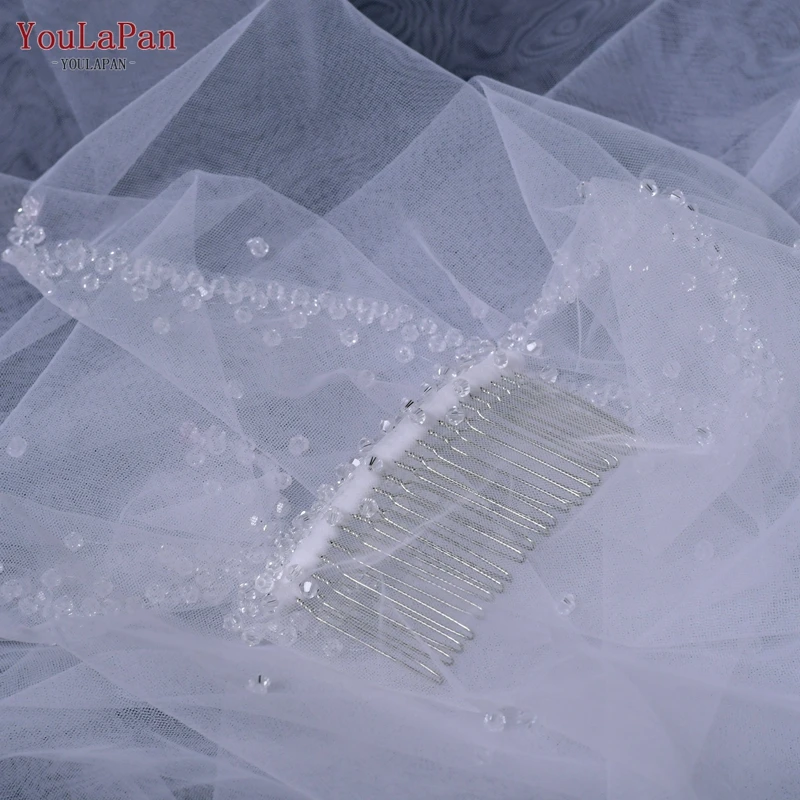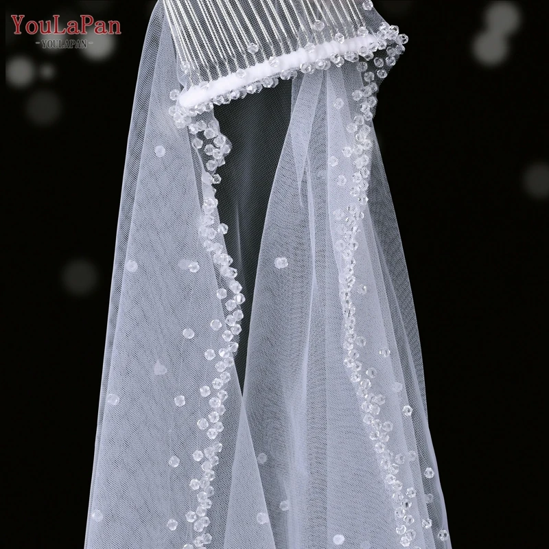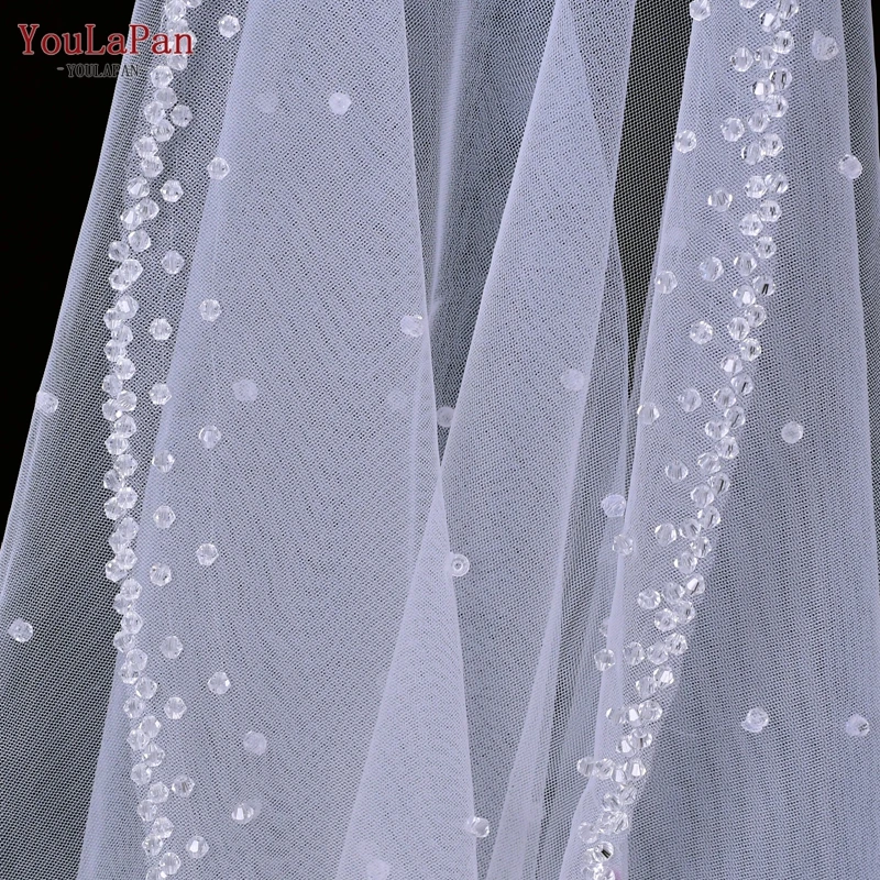 YouLaPan V85 Роскошная свадебная фата, свадебная фата с бисером и кристаллами, фата с кончиком пальцев, Новое поступление, белые стразы