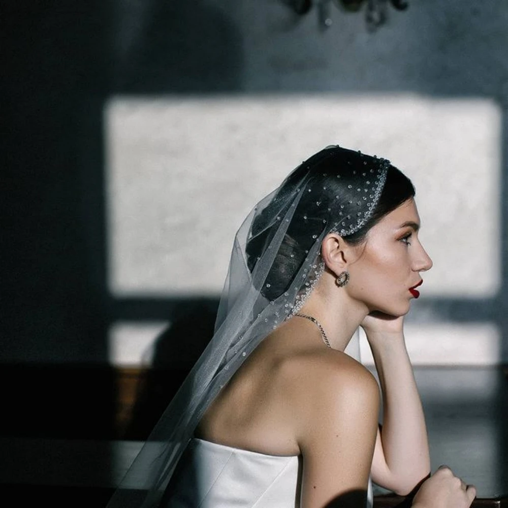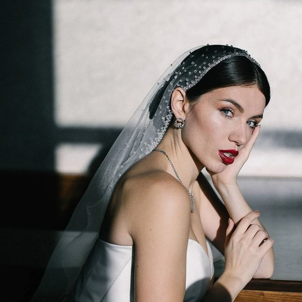 Элегантная свадебная фата TOPQUEEN V01 с жемчужинами разного размер...