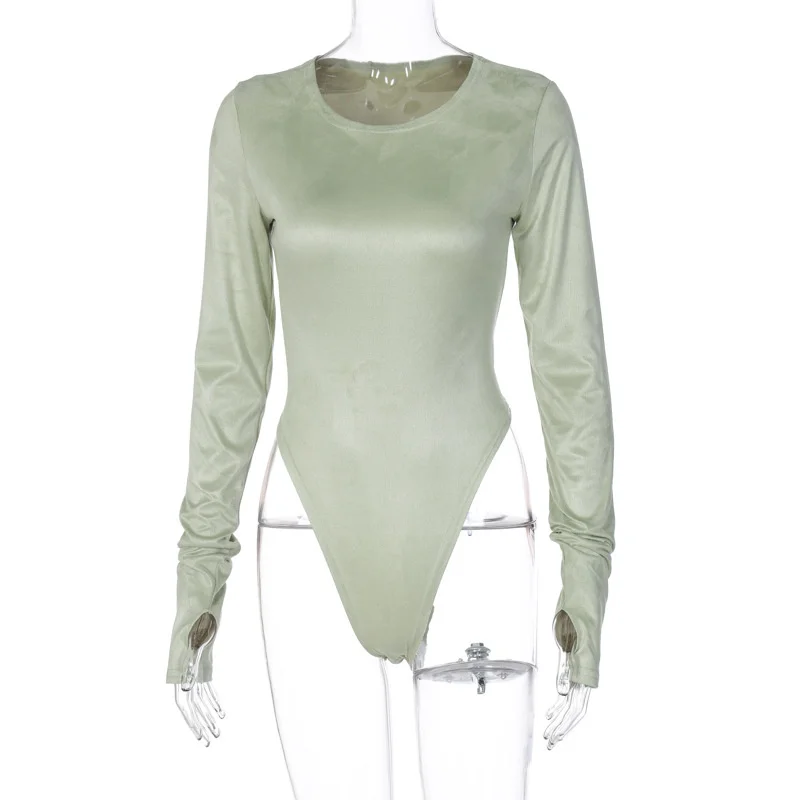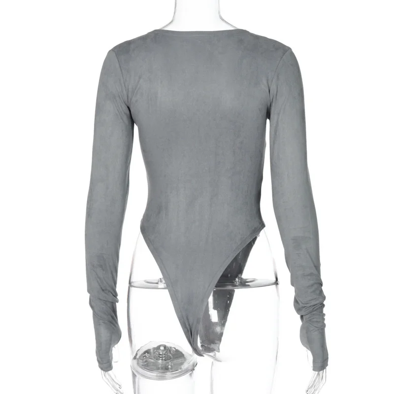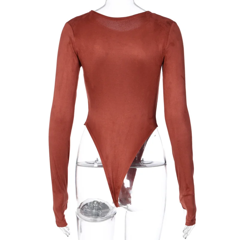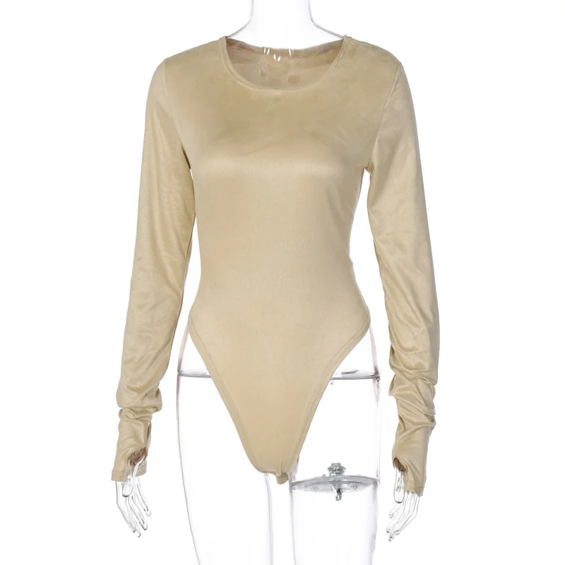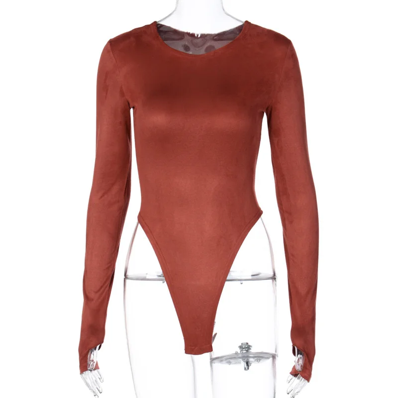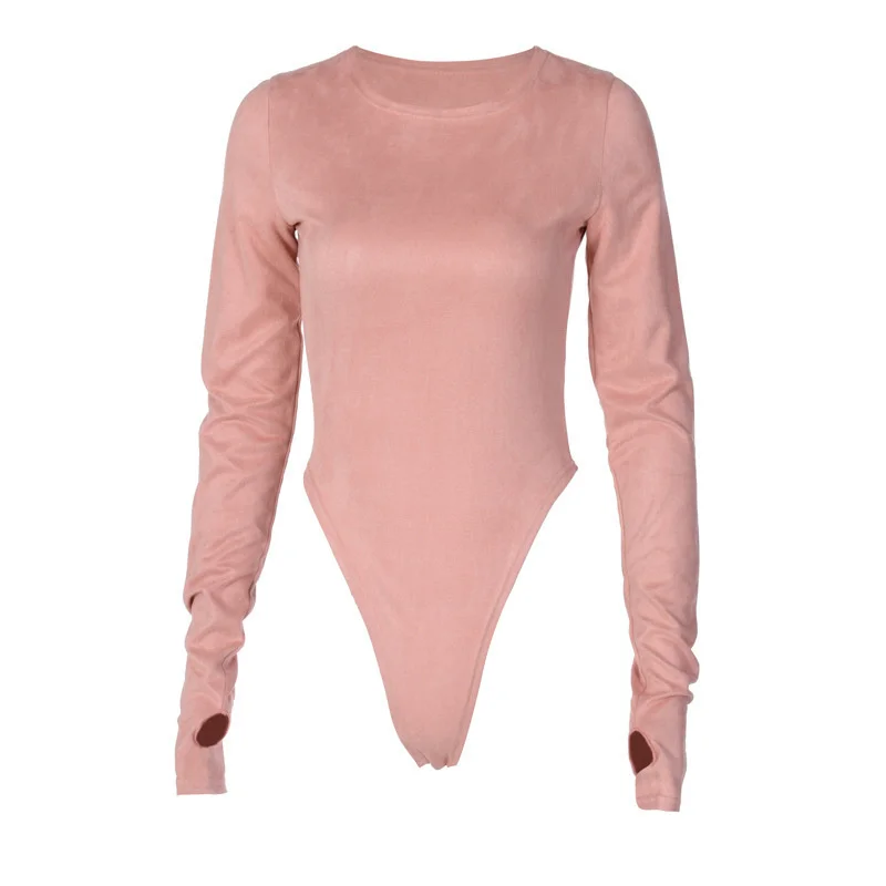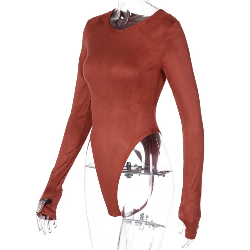 Женское боди из замши, с круглым вырезом и длинным рукавом, повседн...
