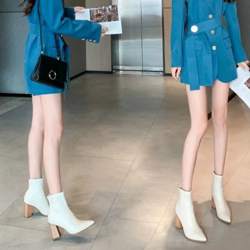 Женская обувь на толстом каблуке Весна-Осень 2022 новые остроносые туфли на высоком каблуке 7 см телесные туфли на среднем каблуке Martin Boo