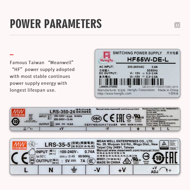 Известный тайваньский источник питания «Meanwell» «HF» с наиболее стабильным непрерывным источником энергии с длительным сроком службы.