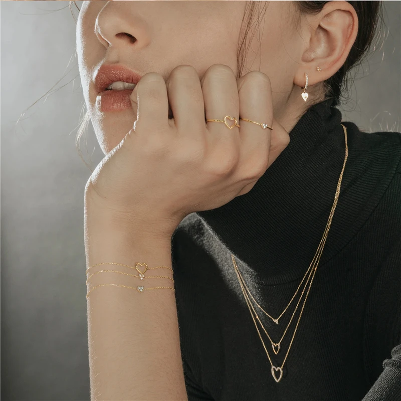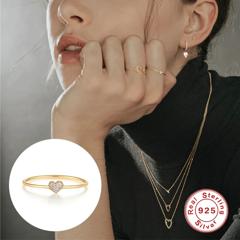MC 18K позолоченные искусственные серебряные кольца для женщин и девушек Аутентичные S925 циркониевые солнцезащитные сердца тонкие искусственные кольца Новинка