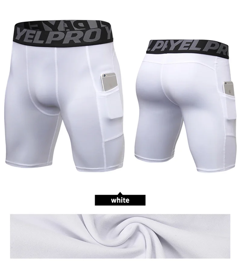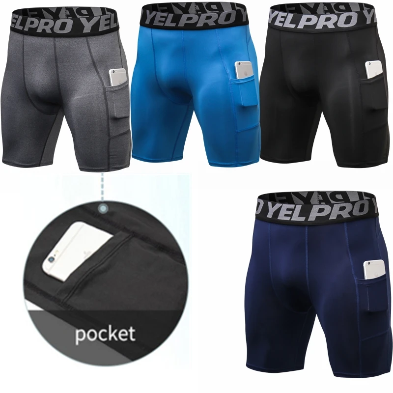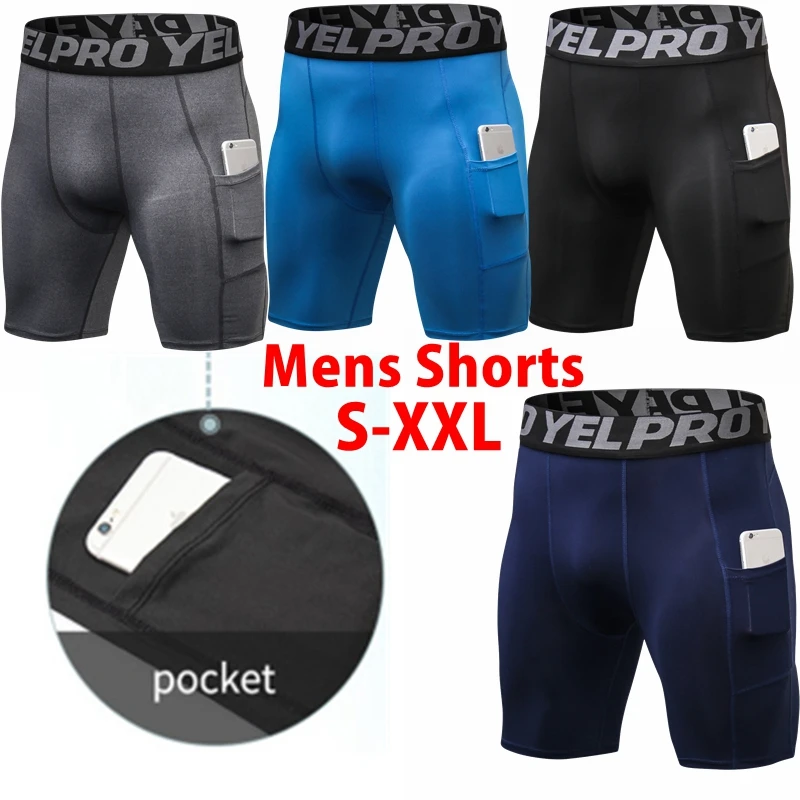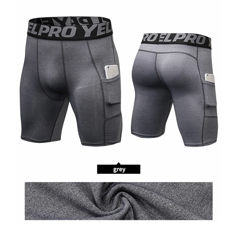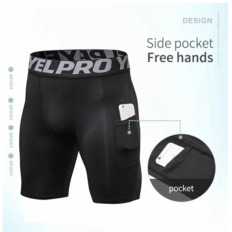 Мужские компрессионные быстросохнущие короткие леггинсы с карманами, трико для бега, спортивные шорты для тренажерного зала и фитнеса, леггинсы для мужчин