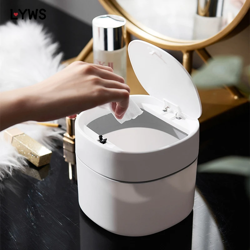 2L Мини-урны для мусора Настольная корзина для мусора Домашний стол Пластиковый мусорный бак Ванная комната Косметические урны Спальня Коробка для разного мусора для кухни