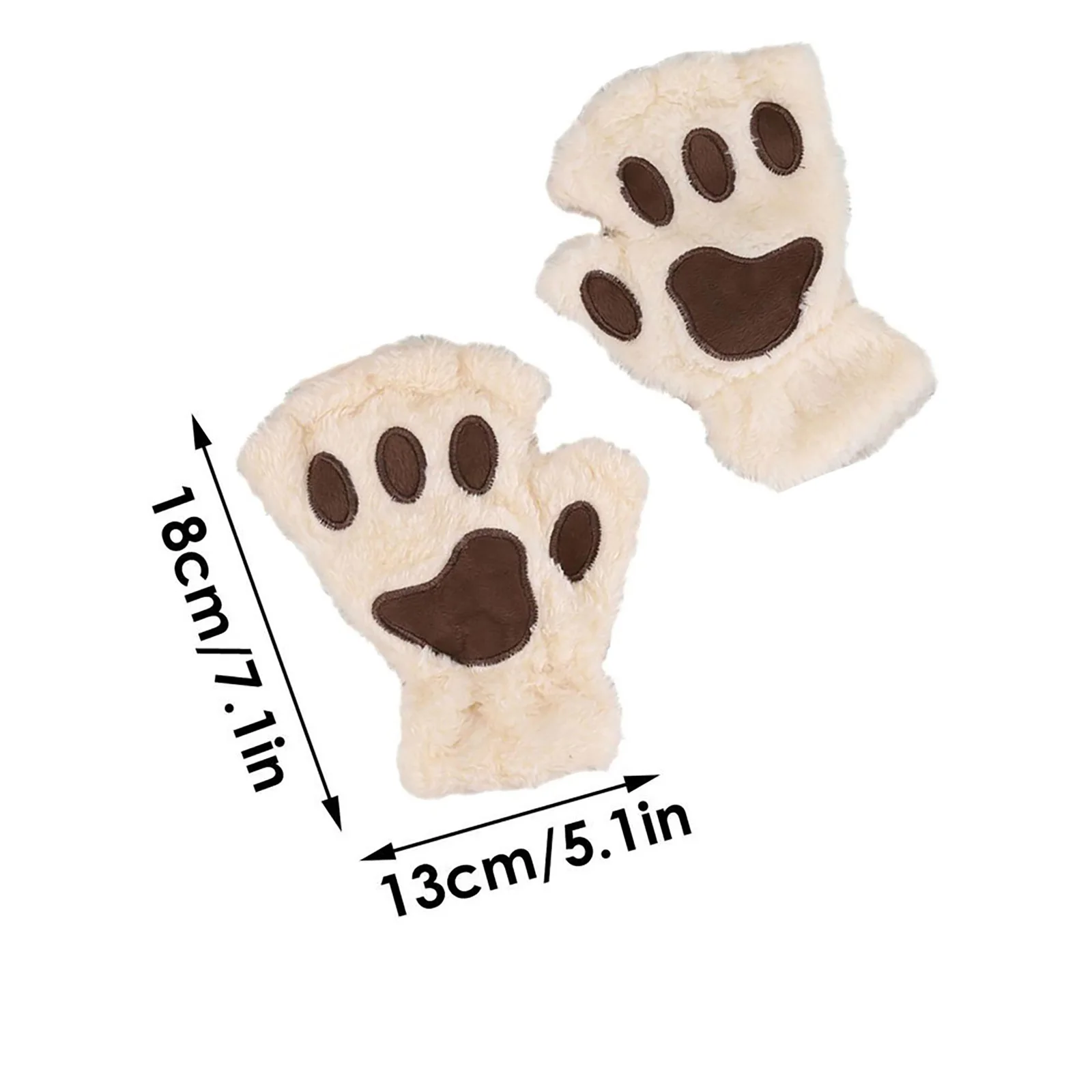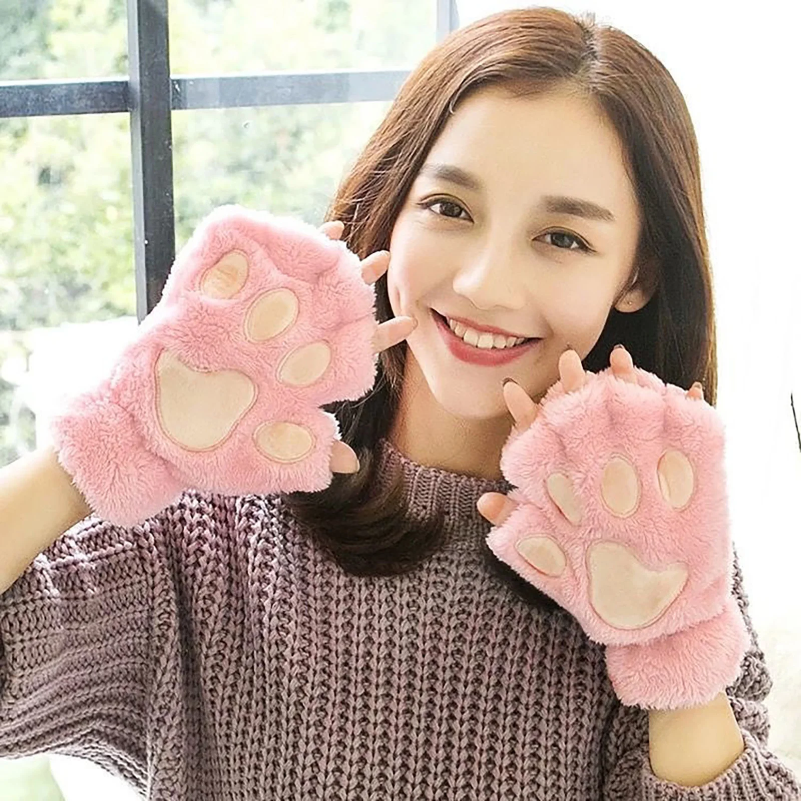 Симпатичные плюшевые перчатки в виде кошачьих лап без пальцев зимние теплые варежки из искусственного меха перчатки на полпальца милые перчатки в виде медвежьих лап для женщин и девочек