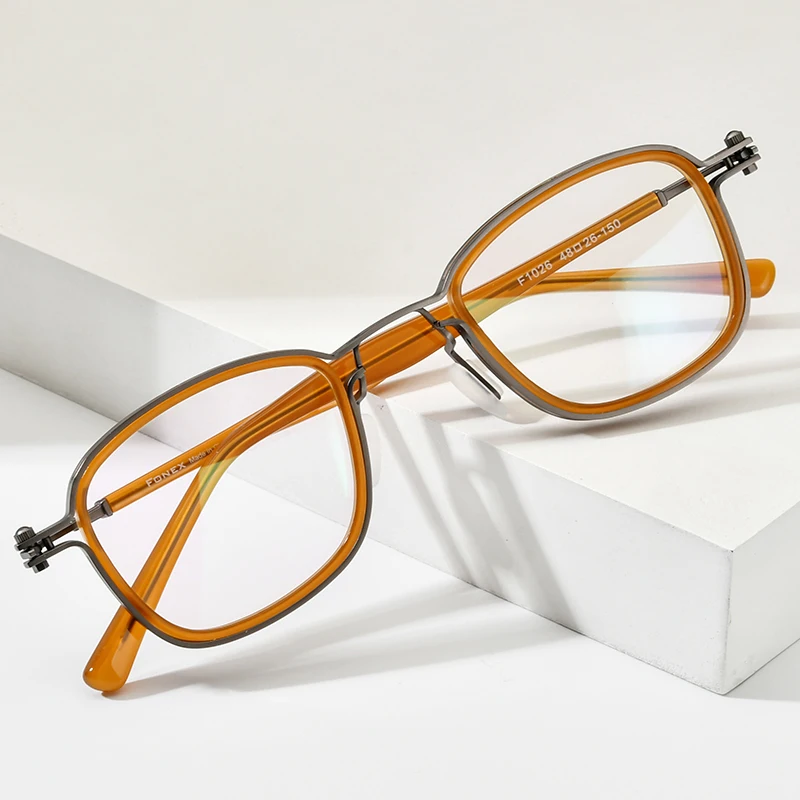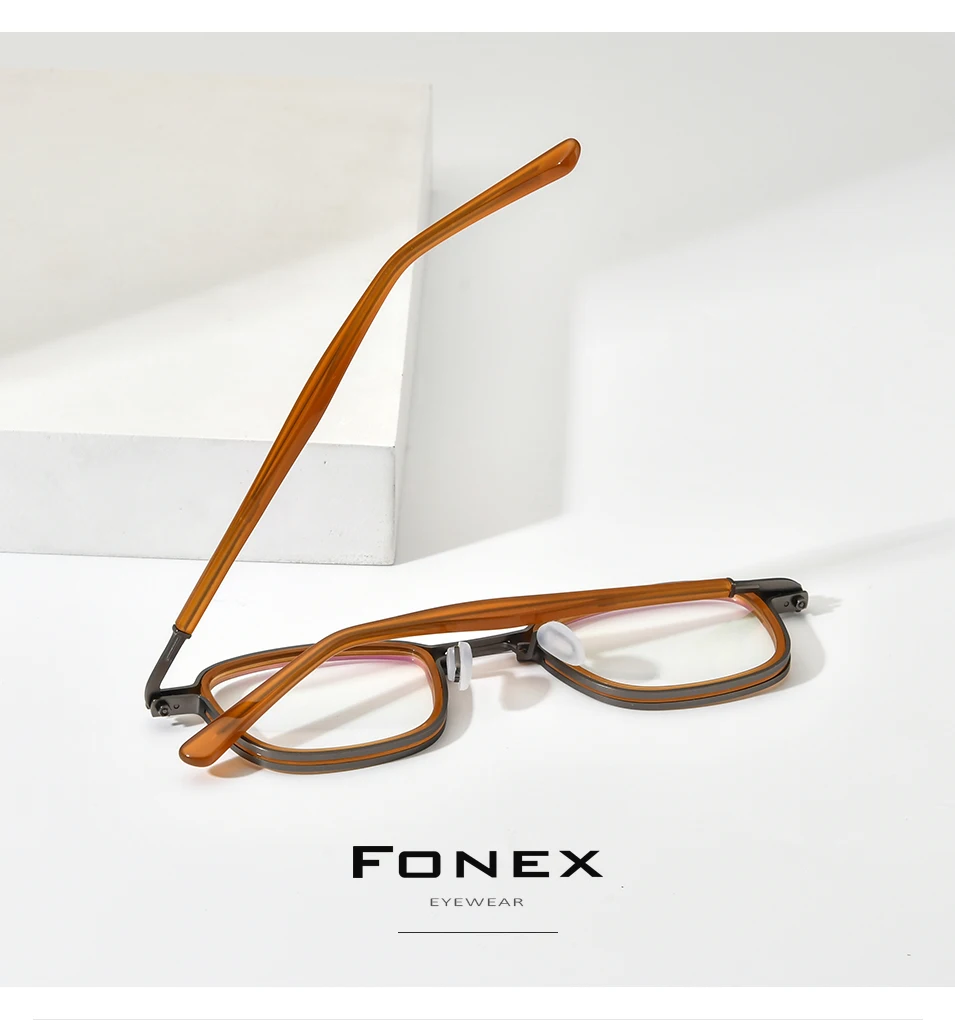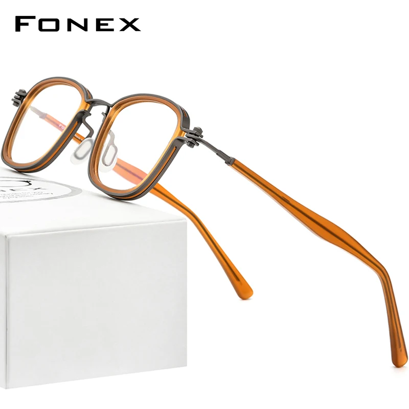 FONEX Оправа для очков МужскаяЖенская квадратная из ацетата и титана