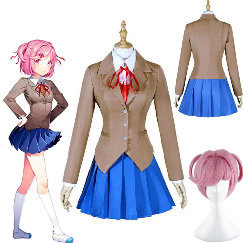 Аниме косплей игры Doki Literature Club Monika Косплей Sayori Yuri Natsuki Косплей Костюм Школьная форма для девочек Аниме Костюмы