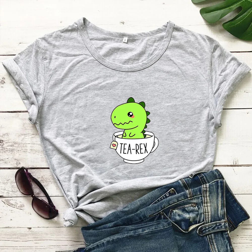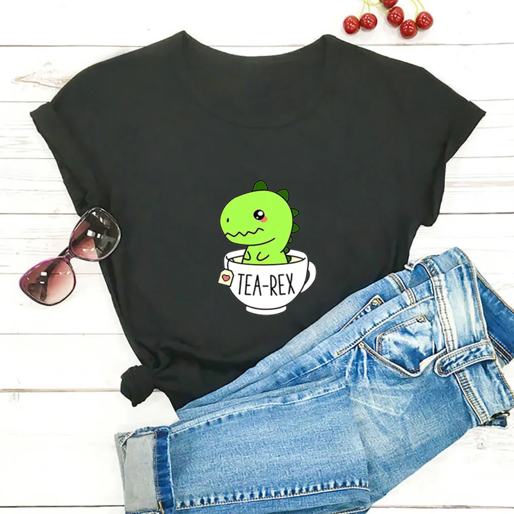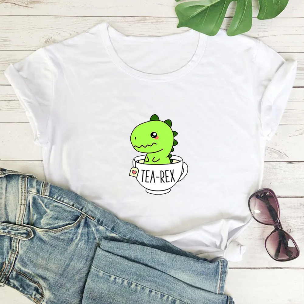 Женская футболка с рисунком маленького динозавра, белая свободная футболка с рисунком динозавра