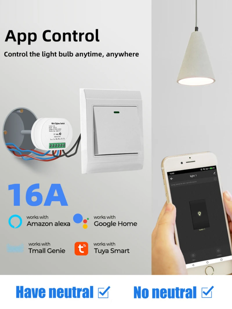 Умный переключатель Tuya Zigbee, умный выключатель с временем и управлением через приложение, с поддержкой Alexa и Google