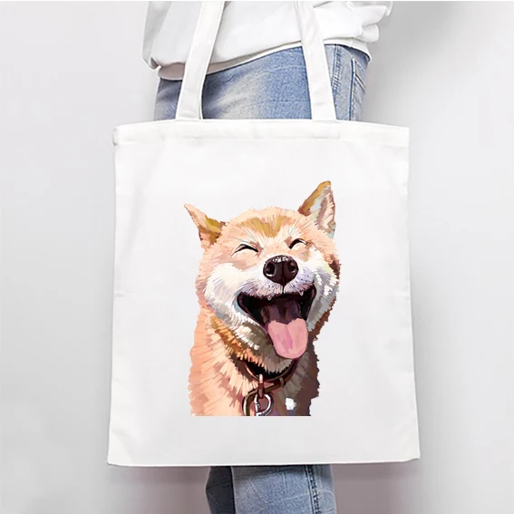 Сумка-шоппер женская с принтом аниме и собакой, складная моющаяся м...