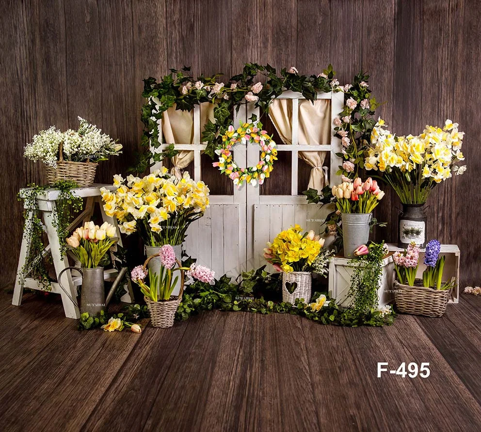 Пасхальные фоны для фотосъемки весенние цветы деревянный пол Новорожденный ребенок портрет семейвечерние фон для фотостудии