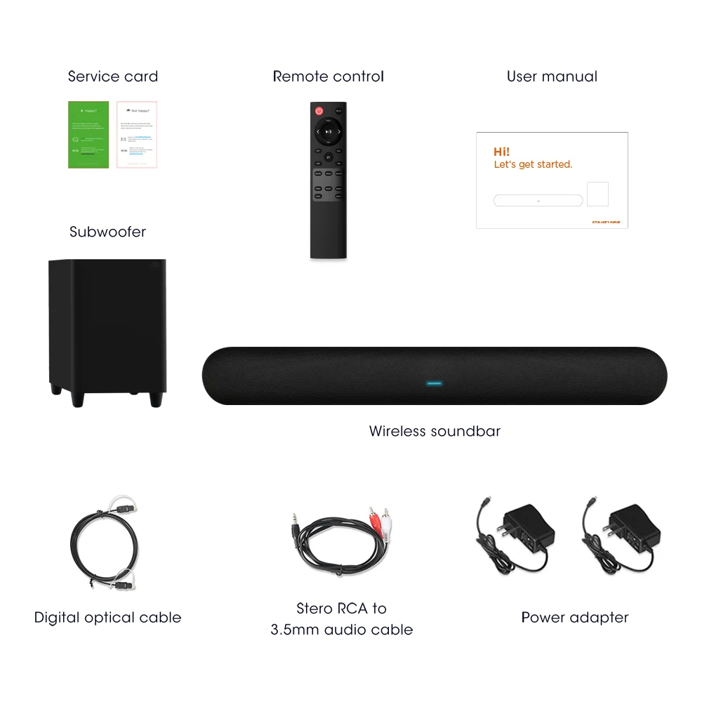 Доставка через неделю! Было очень легко настроить, и мой телевизор отлично работает с прилагаемым оптическим кабелем. Как мой iPhone подключен через bluetooth. Я доволен своей покупкой и буду без колебаний покупать у продавца снова.